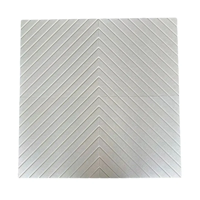 当社のベージュ V チャンネル PET フェルト音響パネルは、衣類の繊維と同じ素材である PET ポリエステル繊維を基材として使用しています。表面には繊細なV溝のエンボス加工が施されており、柔らかく肌に優しい手触りです。内部は微細な孔で満たされており、音が当たると反射やエコーを起こさずに吸収され、騒音問題を解決します。ベージュ色はさまざまな装飾スタイルにもマッチし、ノイズ低減と美的魅力の両方を保証します。